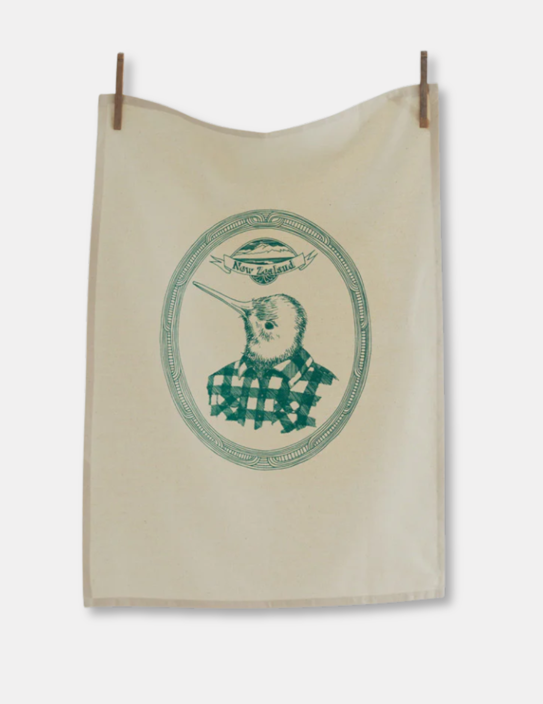Brighten up your kitchen with this NZ Kiwi tea towel by Natty. This NZ Kiwi tea towel by Natty is made of 100 % natural (unbleached) cotton tea towel hand screen printed in green ink with our own hand drawn design.