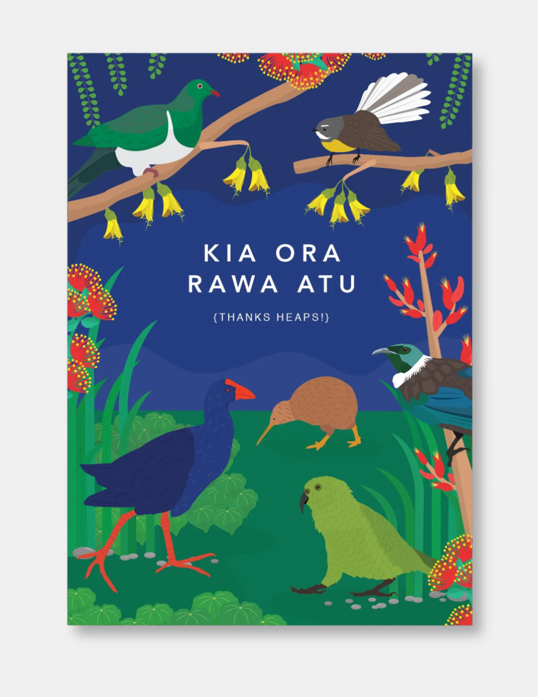 Say Kia Ora Rawa Atu (Thanks Heaps) with this card featuring NZ birds designed by Iko Iko.