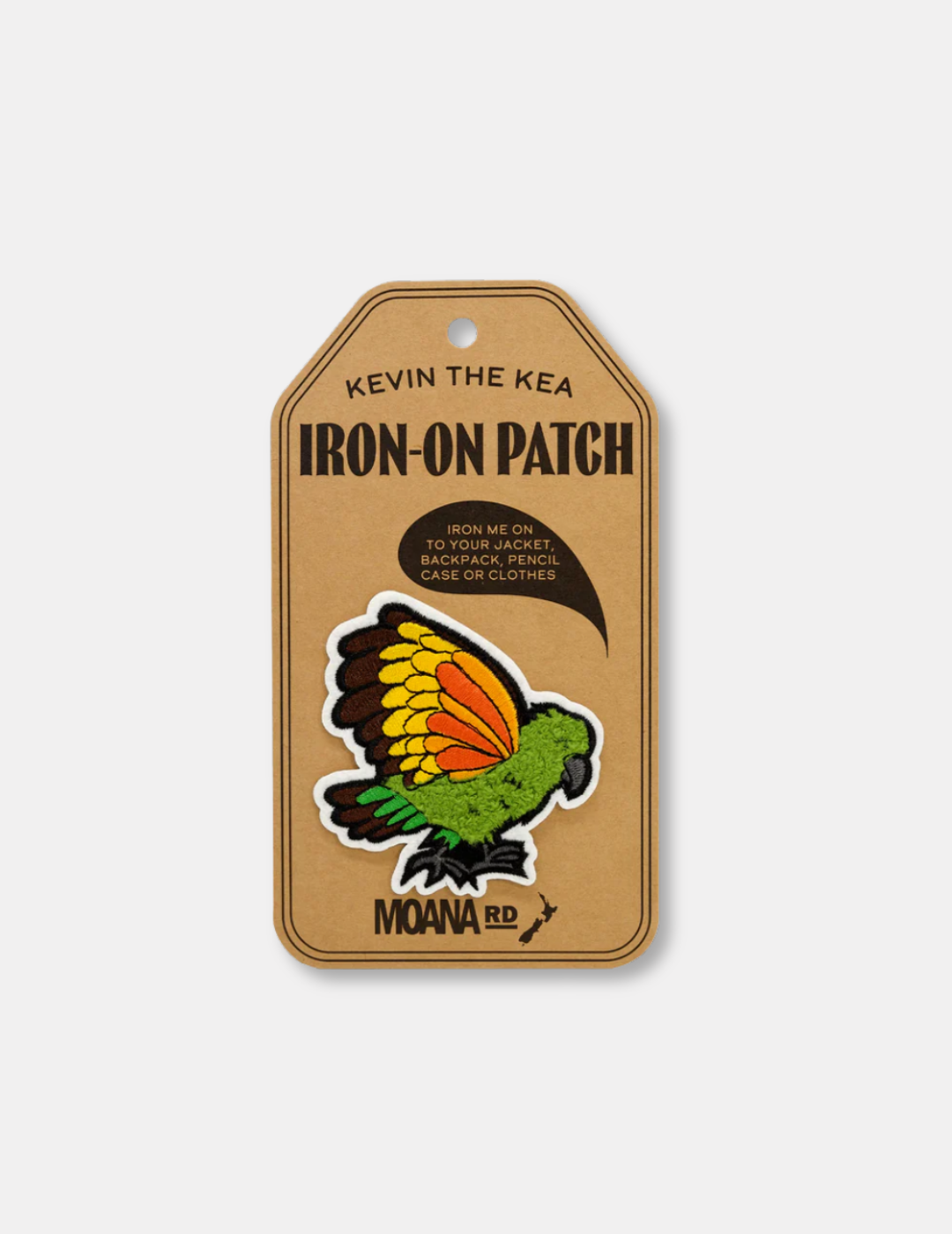 Add a bit of Kiwi charm to your wardrobe with this Kevin the Kea Iron-on patch. This is a retro stlye patch ideal for your bags, hats, and jackets!