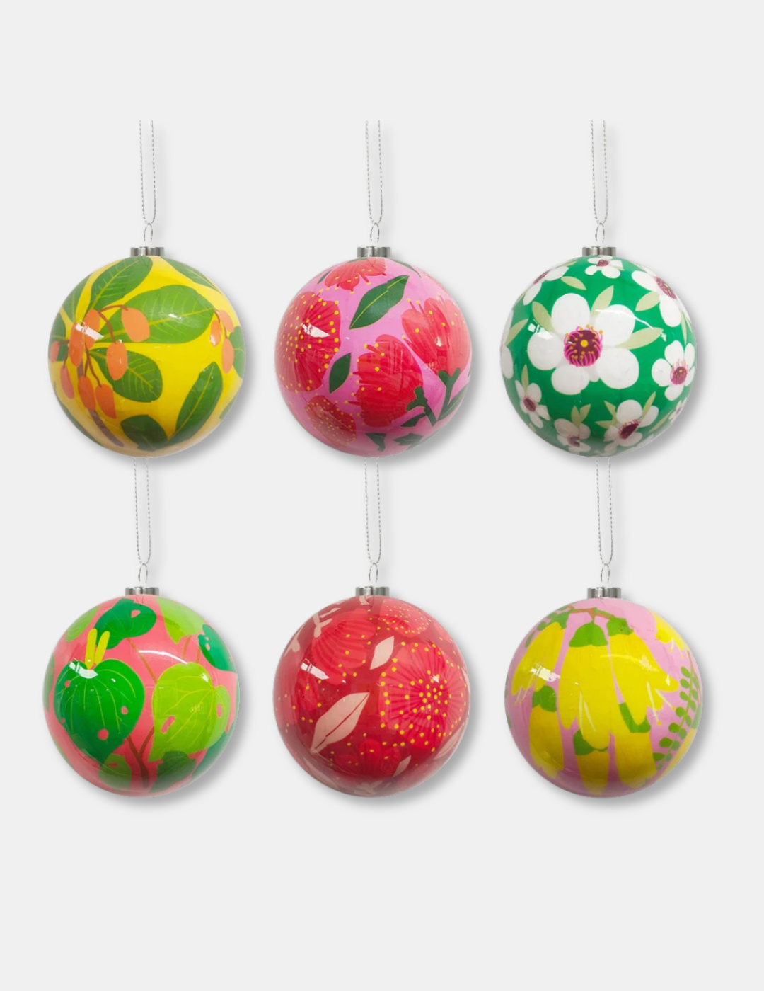 Put a bit of Kiwiana on your Christmas tree with this beautiful boxset of six New Zealand Botanicals Christmas baubles. Perfect as a gift or for your own tree.